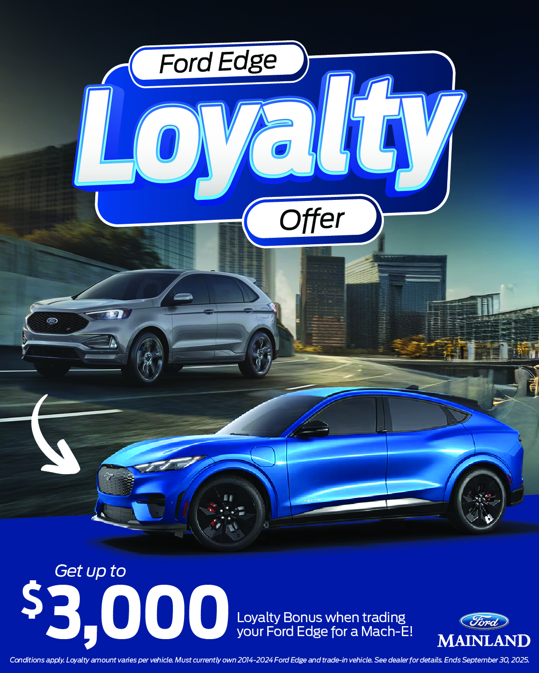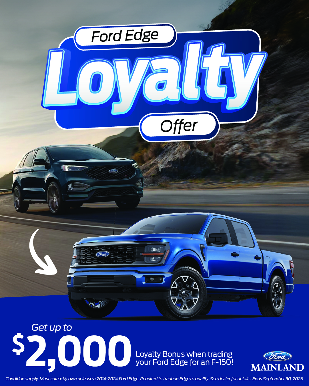 But don’t wait too long, the offer ends September 30, 2025. Visit us at Mainland Ford or contact us today and let’s make your Edge’s last ride the start of something new, exciting, and rewarding.